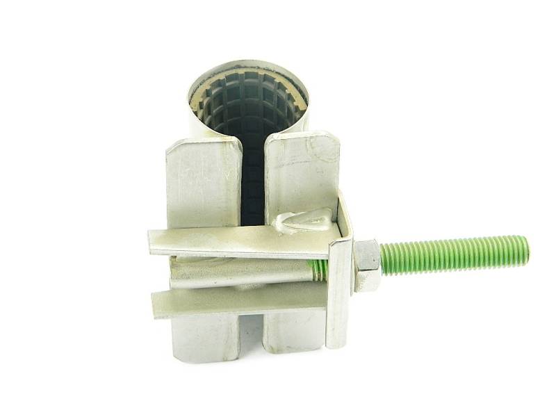 Obejma naprawcza Gebo, wykonane z żeliwa sferoidalnego (czyli tzw. żeliwa ciągliwego).