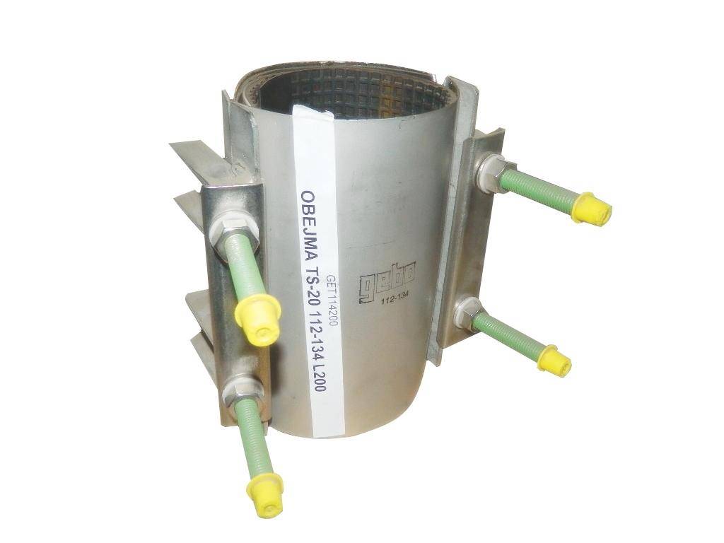 Obejma naprawcza Gebo, wykonane z żeliwa sferoidalnego (czyli tzw. żeliwa ciągliwego).