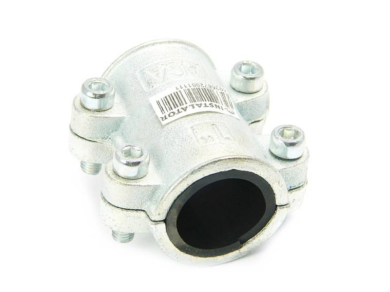 Obejma naprawcza Gebo, wykonane z żeliwa sferoidalnego (czyli tzw. żeliwa ciągliwego).
