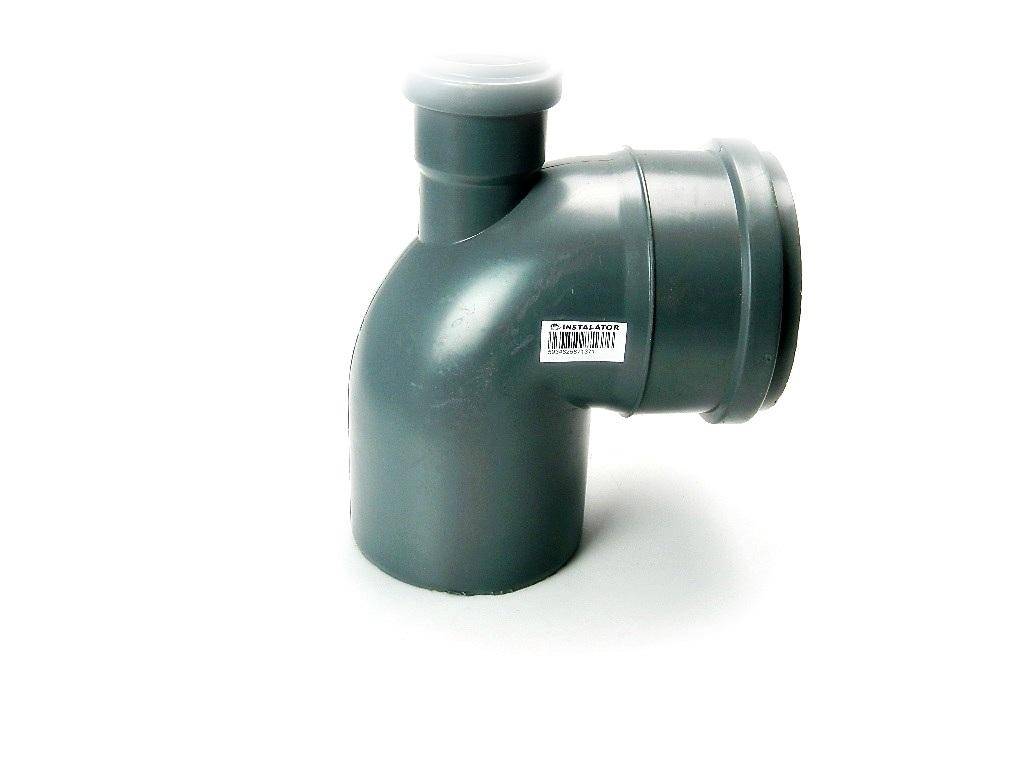 Kolano 110/90° szare z odejściem prostym 50