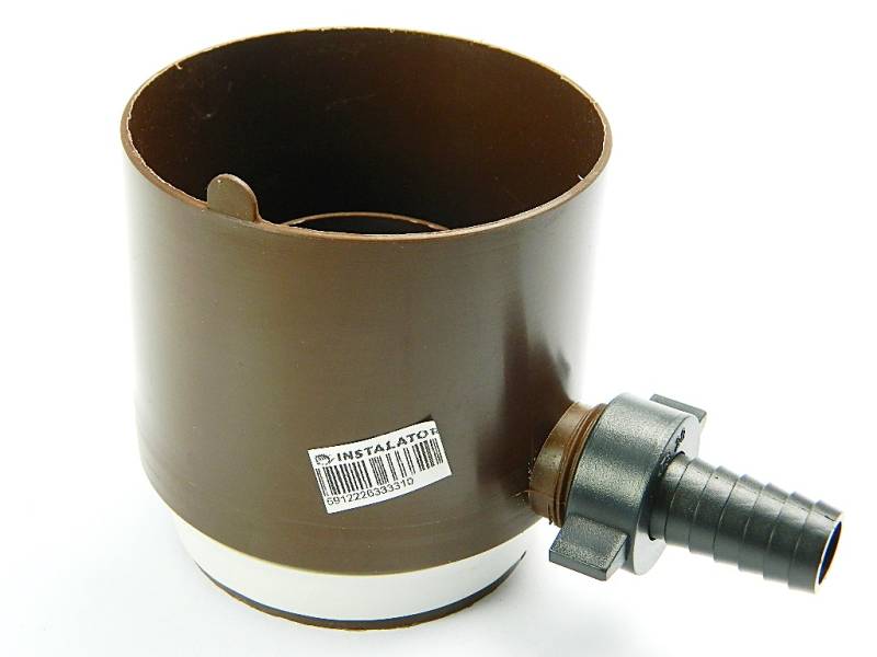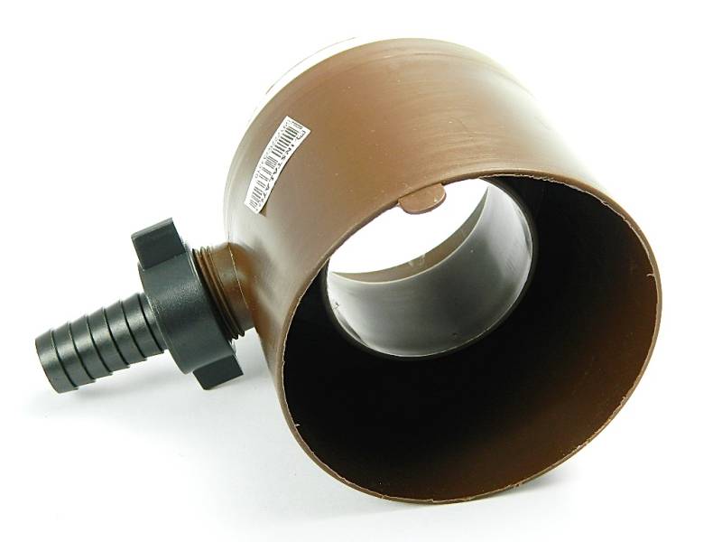 Zbieracz wody z rury spustowej 110 do zbiornika na deszczówkęZbieracz pasuje do rur metalowych oraz z PCV o średnicy 110mm.Kolor ciemny brąz.
