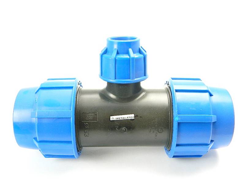 Trójnik redukcyjny 63/32/63 skręcany do rur PE