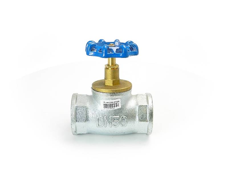 Zawór grzybkowy wykonany z żeliwa ocynkowego.